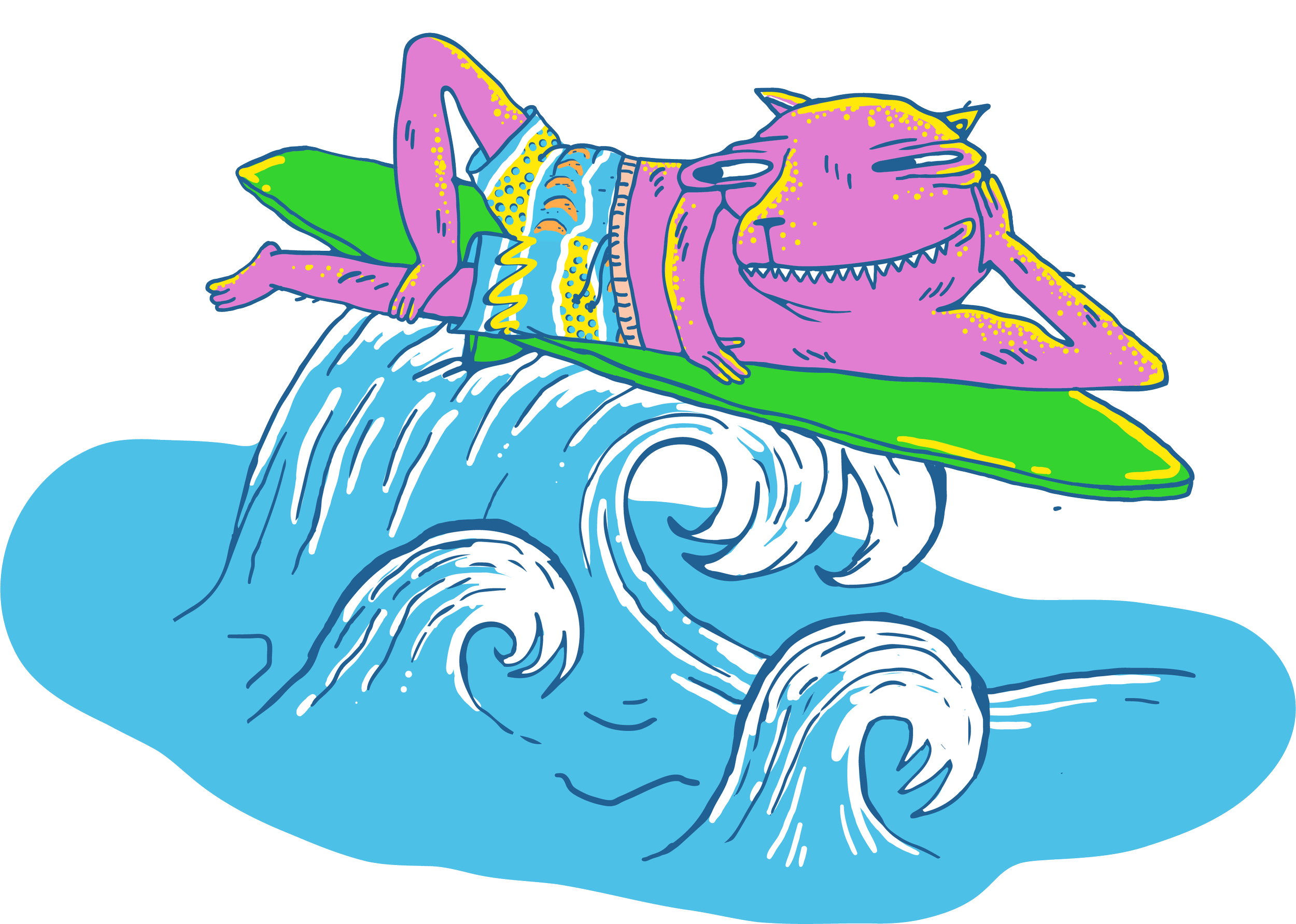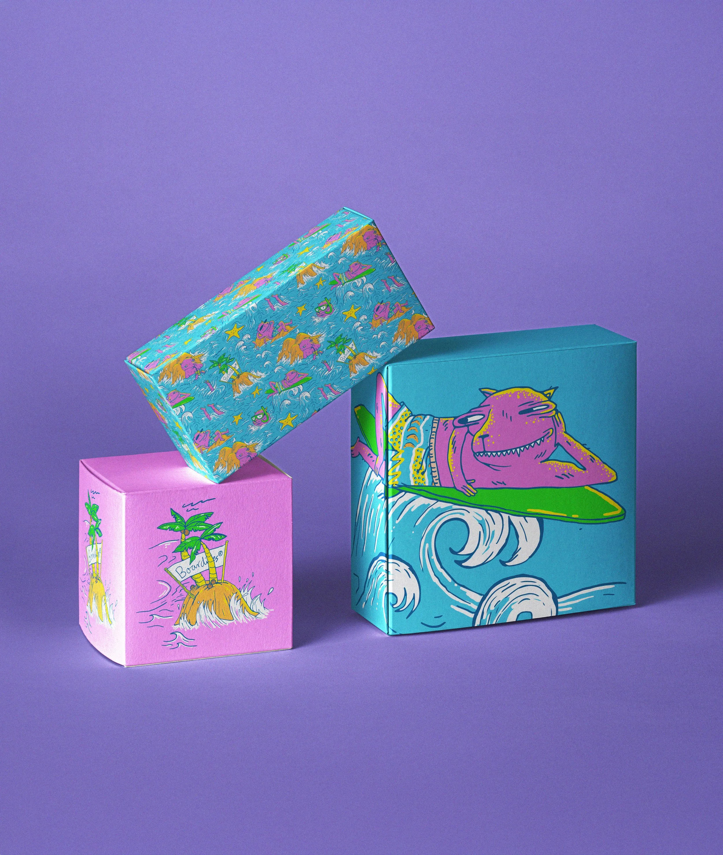 Boardies collaborates with international artists each season to create unique swimwear patterns. The brief called for something bright, bold, and fun - perfectly aligned with Boardies' vibrant brand identity. After presenting multiple directions, we selected this bold, playful design featuring pink panthers hanging out enjoying life.